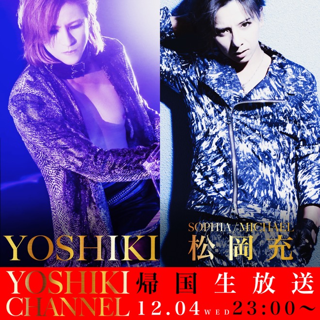 YOSHIKIと松岡充による対談が、12月4日(水)23:00から生放送されることが発表となった。松岡充とYOSHIKIによる対談は全メディア初となる。