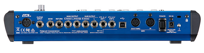 ▲GKピックアップを使わずにダイナミック・シンセと内部エフェクトが使用可能なGUITAR INPUTを用意。拡張性を高めるエフェクト・ループや出力設定が変更可能なMAIN/SUB OUTPUTも搭載。USBオーディオ/MIDI対応で、Guitar/Bass to MIDI機能も備える。