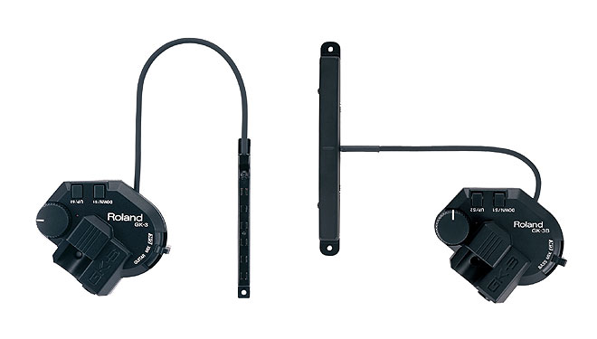 ▲別売りのディバイデッド・ピックアップ「GK-3」(左、ギター用)と「GK-3B」(右、ベース用)を使用すれば、「SY-1000」の機能をフルに活用可能。ギター/ベースの各弦の信号を個別に出力、「SY-1000」の高性能DSPにより、レイテンシー(発音の遅れ)がなく、プレイヤーの演奏ニュアンスを忠実に再現する精度の高いトラッキングで、重厚なシンセ・サウンドや、表現力豊かなモデリング・ギター/ベースのサウンドを生み出す。