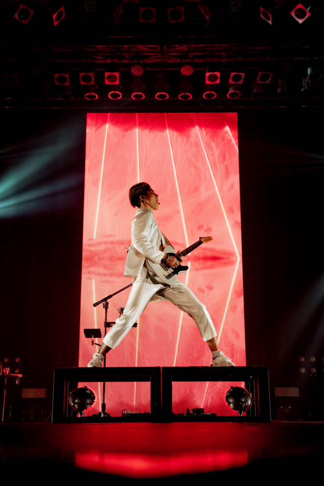 その後、数曲を披露した後、5月にコンサドーレ札幌<Hard Rock Experience Thanks Match>のハーフタイムでも披露した「Fire Bird」をパフォーマンスし、大いに盛り上げ、「Raise Me Up」「Day 1」とテンポの良い曲で場内を大いに盛り上げた。