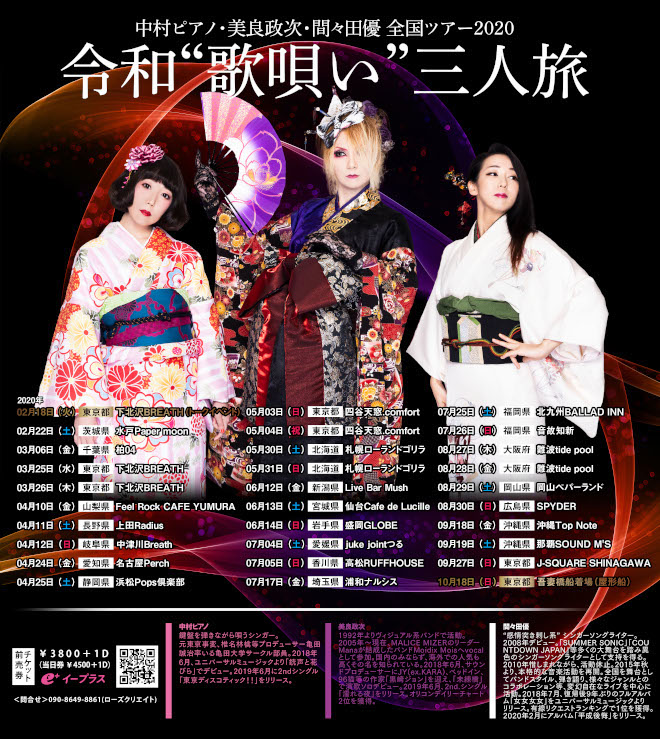 2020年2月、新譜リリースを控える突き刺し系シンガー「間々田優」、ヴィジュアル系演歌歌手「美良政次」、今年夏にユニバーサルミュージックより2ndシングルをリリースした「中村ピアノ」によるトリプルヘッドライナー全国ツアーが決定した。