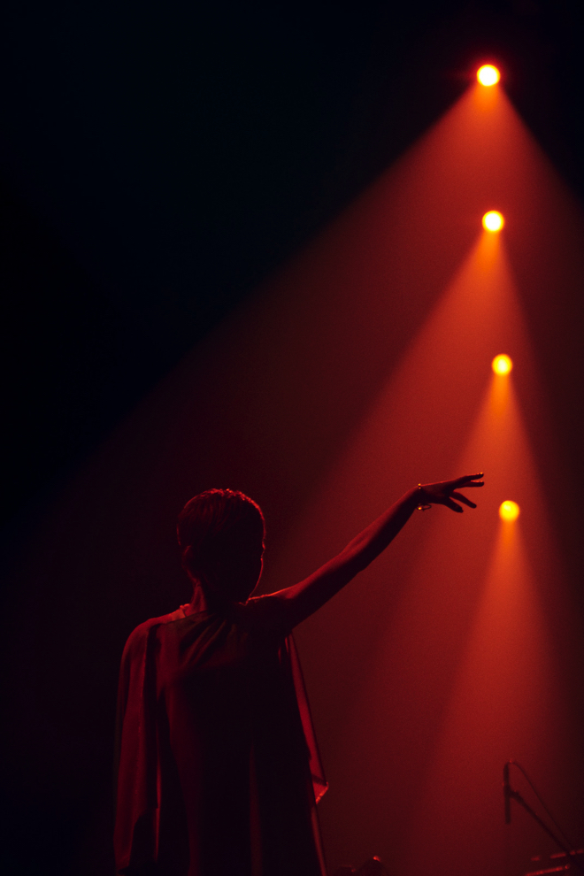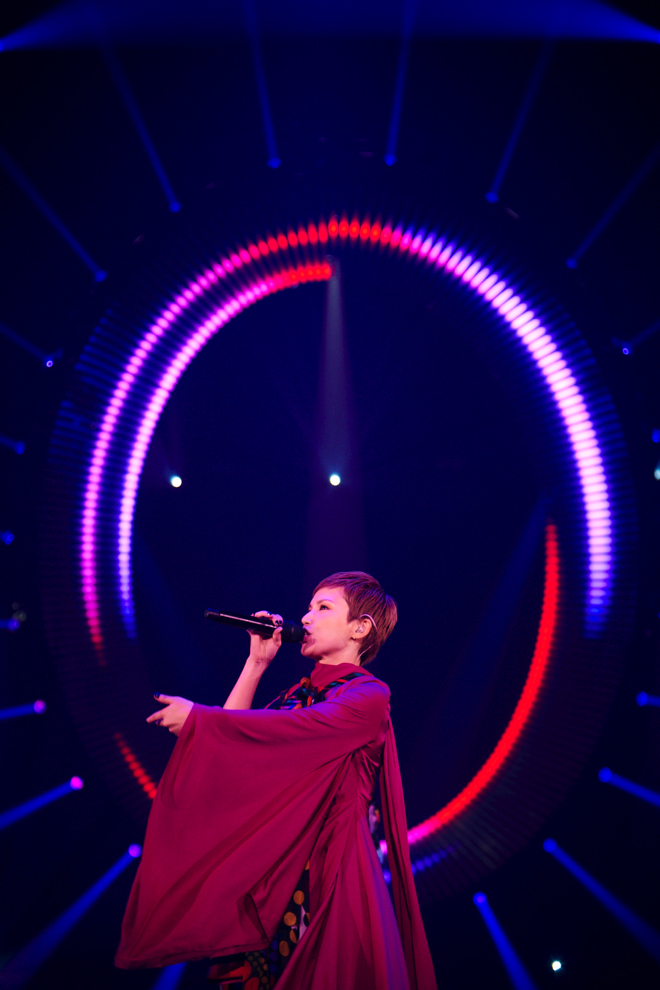 アリーナ中央のサブステージでダンサー4人がパントマイムのように踊る演出が素晴らしい「氷に閉じこめて」のあとは、今回のライブの最大のハイライトと言っていい「I Remember」だ。バンド演奏はなく、志帆ひとりが全編アカペラで歌い通す。静まり返った会場に志帆の歌だけが響く。ほかの曲ももちろんそうだが、この曲は特に1回1回の公演でその日だけの歌となる。それは魂の熱唱と言っていいものだ。約1万人を前に、こんなふうに歌えるシンガーが日本にほかにいるだろうか。