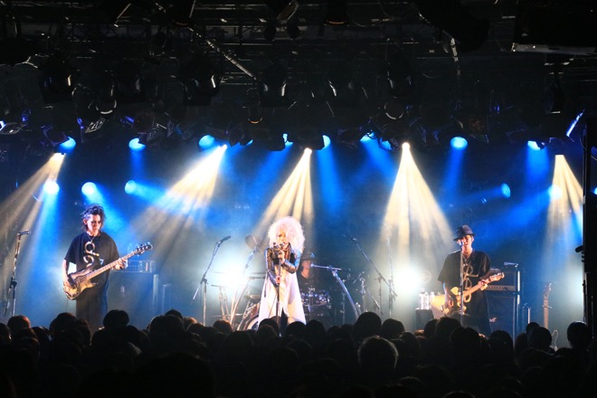 「lunch box」から始まったお馴染みのナンバーは単なる懐メロではなく、今、呼吸しているサウンドとして観客ひとりひとりの心に響いていたに違いない。パフォーマンスを交えながらのヴォーカル眞呼の存在感は回を増すごとに力強いものになり、aieの自由奔放なギターの音色は各曲の表情を引き立たせていく。