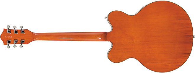 スプルース材のセンターブロックはチェンバード加工することでアコースティックな響きと軽量化を実現し、不要なフィードバックを起こしにくい設計。パーロイド・ネオクラシック・サムネイル・ポジション・インレイを施したローレル指板にメイプル・ネックを組み合わせ、セットネック・ジョイントを採用する。