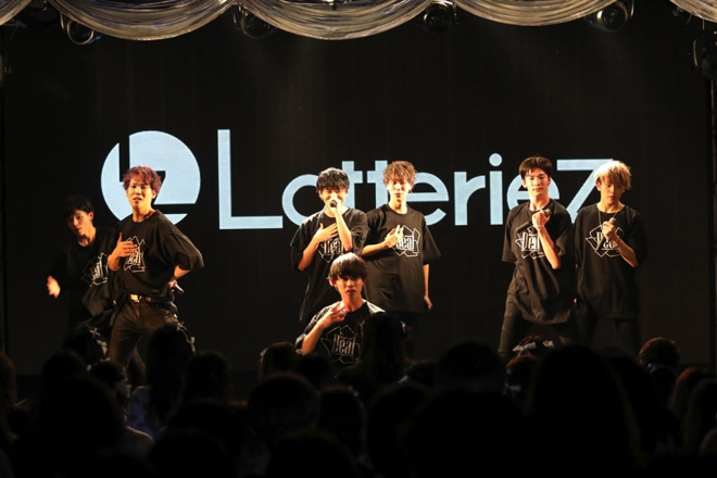 1曲ごと、音の絵を塗り替えるようにLotteriezのライブは進んでゆく。クールにラップをぶち噛ます「BLACK UNICORN」を手にLotteriezのライブはスタート。サビでは高揚した声を張り上げ、一体化したパワフルなパフォーマンスを提示。笑顔を封印、心に秘めた野生の魂をちら見せながら、7人は期待に胸を馳せるファンたちにドープな衝撃をぶつけだす。表情は一変、華やかでソウルフルな「love before」を通し、彼らは、目の前に集まったラヴァーズたちを口説くように甘い声を重ねだす。軽やかな動きに視線が釘付けになれば、誘いかける彼らの歌声に、大勢のファンたちが「ヘイ!!」と声を上げ気持ちを寄り添えていた。続く「Summer Lazer」では過ぎ去った夏を呼び戻すように《アツナツ とろけそうな君の目に溺れていた》と歌い、眩しい歌の紫外線を降り注いでいった。
