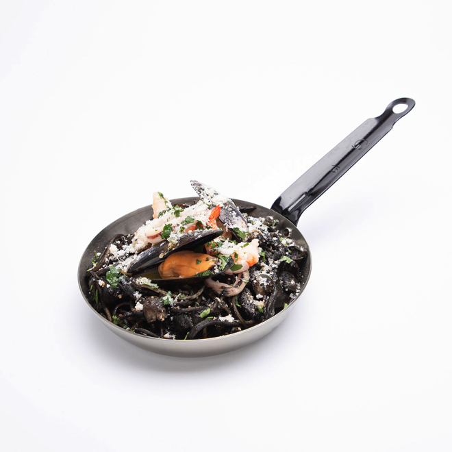 NY“ずる料理”キノコたっぷりのイカ墨パスタ