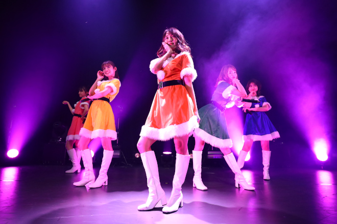 続いて、カラフルなサンタ衣装を身にまとって登場したのは東京パフォーマンスドール。最新アルバム「Hey, Girls!」からのレパートリーを中心に、等身大女性の可愛らしさをフィーチャーしたセットリストで、クリスマスならではのスペシャルなステージを披露。この日は舞台公演中で欠席となった浜崎香帆も、場内アナウンスでオーディエンスを盛り上げた。