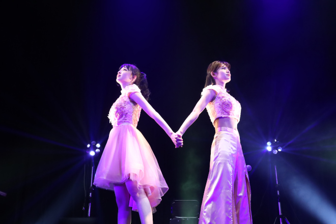 TPDが残した熱気や興奮が冷めやらぬステージに登場したのは、上西星来と脇あかりの二人によるユニット・赤の流星。2019年は数々のイベント出演を果たし、磨きのかかったステージングは貫禄すら見せつけた。ここではオリジナル新曲「光のペガサス」を初披露、阿吽の呼吸で織りなす二人の美しい世界観は、TPD本体を凌駕する勢いを感じさせるものであった。
