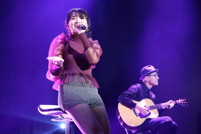 この日、ラストのステージを飾ったのは、23歳のバースデーである大晦日を目前に控えた、TPDのリーダー・高嶋菜七。「Pretender」や「さくらんぼ」など、普段のステージでは見られないカバーナンバーの他、ギタリストと共に初のアコースティックアレンジにも挑戦。ファンに人気のTPDのナンバー「Dreamin’」を初アコースティックバージョンでエモーショナルに歌い上げると、オーディエンスの感極まった姿が印象的だった。