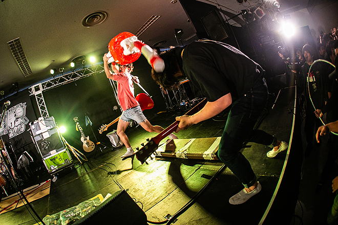 そして超早口で「ROTTENGRAFFTY、20周年とCDリリースと『ポルノ超特急』開催おめでとうございます!」と早々と社交辞令を済ませ、「2020年もよろしくお願いします!」というよくわからないコールを客に叫ばせて「Blah Blah Blah」「GUNSHOTS」「Amy」とキラーチューン連発。最後は本日3回目の「f.a.i.t.h」で金閣をカオスにして終演。悪役に徹し切った彼らの大きな大きなエールは、しかとROTTENGRAFFTYに届いただろう。