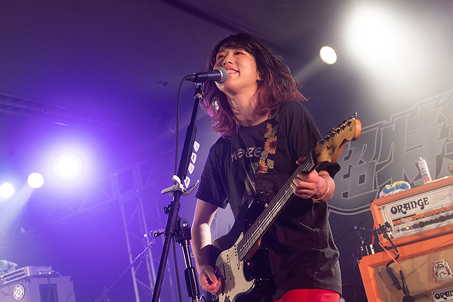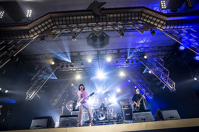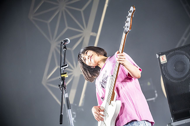 林萌々子(Vo./Gt.)が「知ってるとか知らないとかどうでもいい。ここが最高かそうじゃないか、その二択だと思います」と言い、「その最高を目指してやる!」と「拝啓、少年よ」でライブスタート。現場で鍛え上げたライブバンドの魂がビシビシ伝わってくる熱いステージに観客たちのライブ魂も燃え盛り、フロアは大盛り上がり。ぴか(Ba./Cho.)がベースを弾きながらぴょんぴょんと喜びを爆発させ、「短編小説」では林が柵上から客席エリアにダイブ。大きな歓声が沸き起こる。
