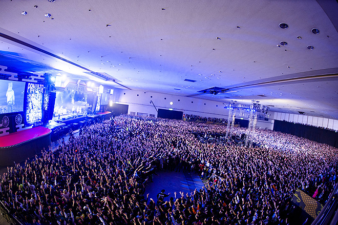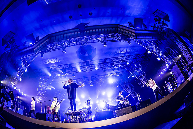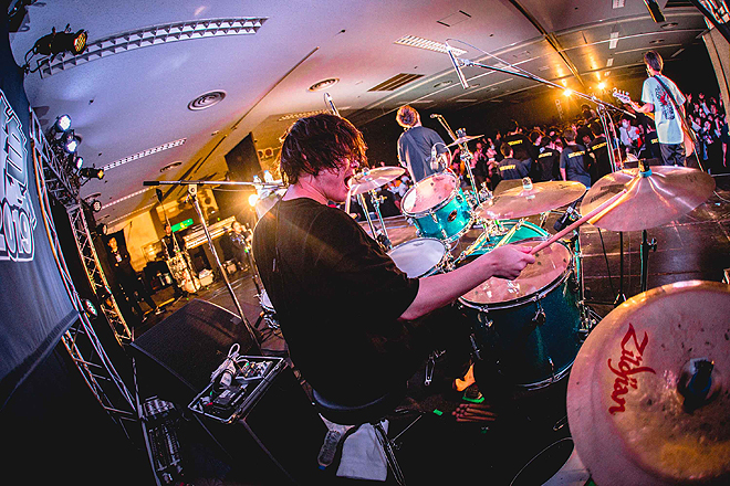 HATANO(Dr.)が「さぁ、今年もどんくらいすげぇか見せてくれよ。派手にいこうぜ!」と言って始まったHawaiian6。オーディエンスも彼らのライブの楽しみ方を存分に心得ており、最初から全開&全力で音に乗る。「Haze」の流れるメロディに身を任せた観客がサビでダイバーとなって打ち上がり、「I BELIEVE」ではYUTA(G./Vo.)が振り上げると同時に全員でジャンプ。ここには楽しい瞬間しか存在しない。