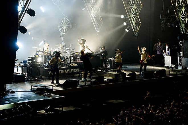 オーディエンスのシンガロングが場内中に響きわたった「Emotions」で幕を開けたMAN WITH A MISSION。早くも沸いたオーディエンスの熱気をさらに上げるべくステージに10-FEETのTAKUMA(Vo./Gt.)が登場し、「database feat.TAKUMA(10-FEET)」を披露。「Take Me Under」では眼光を光らせたDJ Santa Monica (DJ/Sampling)がステージから降り立ち、フロアを煽る。美しいメロディとメッセージが染みる「Remember Me」では再び会場中がシンガロング。ラストに披露された「FLY AGAIN 2019」では場内が一体となり腕を振って歌い踊った、短いながらも濃密なMWAMショー。それは言葉よりも雄弁なロットンへの祝辞だった気がする。