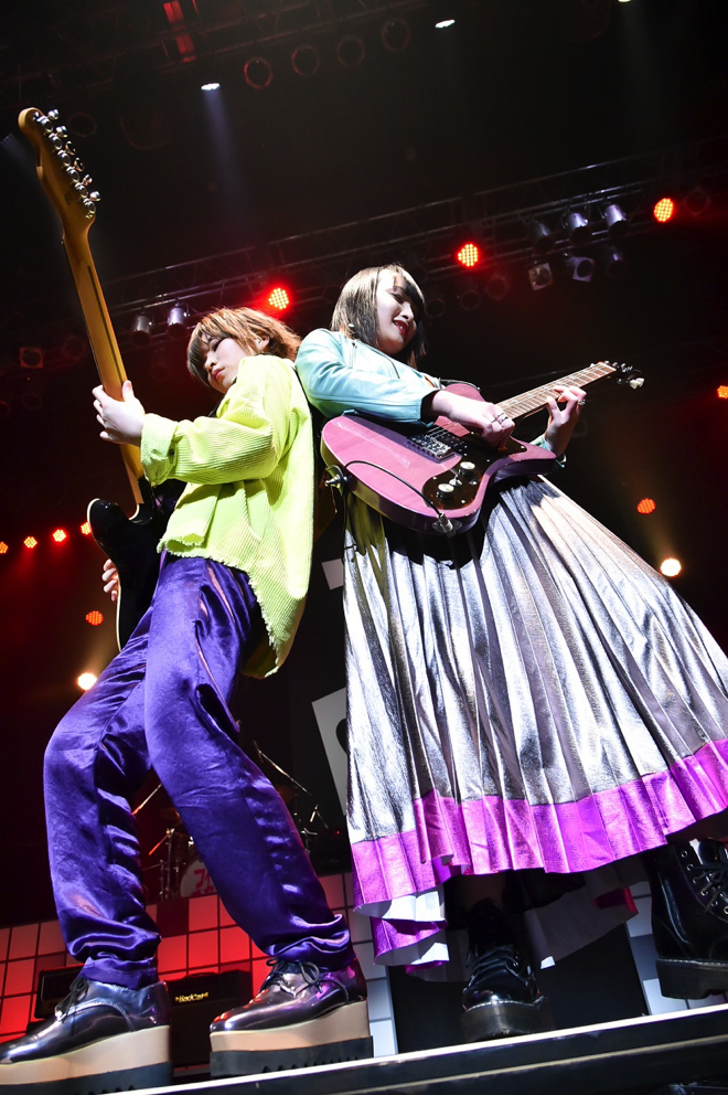 そして、“青”チームは「憂鬱な空が好きなんだ」をアコースティックアレンジでしっとりと歌い、 “紫”チームは、菅野伊吹(Vo,AG)、森ふた葉(Ds)、手塚愛乃(EG,Cho)のオリジナル曲をメドレーで展開。山岸詩(B)がYURI(B)と後藤が演奏する唱歌「さくら」をバックに特技の日本舞踊をパフォーマンス。“月”チームの吉田桃(G)は現体制がこの日で最後となることに触れ、「人と人の出会いは月に満ち欠けのようやと思った。月が満月になってまた欠けていくように、人と人が出会っては別れていく。でも、全然ネガティブになる必要はなくて。私たちはこれから新しい月を探しにいくだけです。これから、皆さんもそれぞれの新しい月を探してください」と語りかけた。フロアは前向きながらも少し感傷的な雰囲気になったが、“黄色”チームが、山本朱莉(Vo)のソロダンスと映画『ロッキー』のテーマ曲「アイ・オブ・ザ・タイガー」のギタープレイで一転させ、「歌いたくて歌いたくて」とAKB48「ヘビーローテーション」をマッシュアップ。“歌歌”チームは、レベッカ「フレンズ」や荒井由実「ルージュの伝言」、Hi-STANDARD「My First Kiss」などのカバーをメドレーで繋ぎ、メンバー紹介ではそれぞれがプレイヤーとしての凄腕を見せつけた。