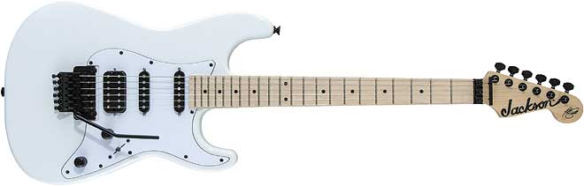 ピックアップはHSSのレイアウトで、ブリッジ・ポジションに高出力のジャクソン・オリジナル・ハイアウトプット・ハムバッキング、ネック&ミドル・ポジションにジャクソン・オリジナル・シングルコイルを搭載。フロイドローズ・スペシャル・トレモロ・ブリッジをはじめ、ハードウェアはスノー・ホワイトのボディ・カラーと相性の良いブラックで統一し、洗練された印象に仕上げている