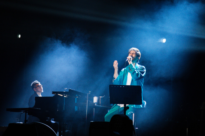 すると今度は、巨大な記号としての平井堅が浮かび上がる2曲が続いた。大ブレイクのきっかけとなった2000年発表の「楽園」と、ミリオンセラーを記録した2004年発表の「瞳をとじて」。平井堅自身のキャリアとしてはもちろん、J-POPシーンの歴史においても重要な2曲を、リリース当時よりもさらに力強い声で熱唱し、観客を驚かせた。