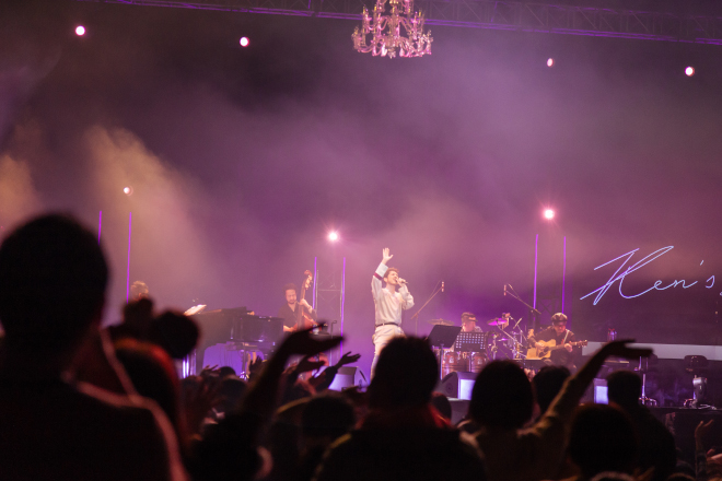 続いてエレクトリックギターだけをバックにした「トドカナイカラ」を終えると、ギター、ベース、ピアノ、パーカッションと、「Ken’s Bar」におけるマックスの編成となり、「君の好きなとこ」「KISS OF LIFE」と、ライブの終盤でお馴染みのアップテンポなナンバーが披露された。