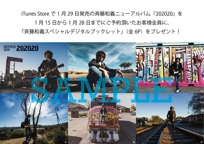 iTunes Storeにてアルバム「202020」を1月15日(水)から1月28日(火)までに予約購入頂いた方全員に、『斉藤和義スペシャルデジタルブックレット』をプレゼント。