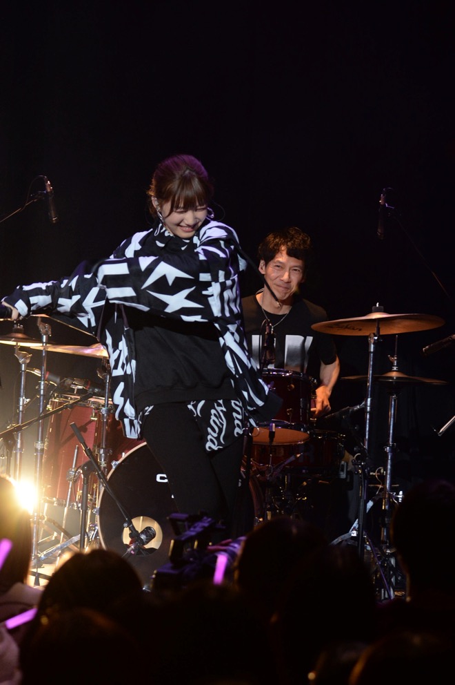 メンバー紹介でベテランサポートミュージシャンを大胆にいじって一気にアットホームな空気を作り上げてしまう、その飾らないキャラクターも魅力のひとつ。爆笑のフリートークですっかり緊張も解け、会場中が笑顔になった勢いのまま、後半戦は「メランコリック」など、アップテンポなナンバーを畳みかけていった。