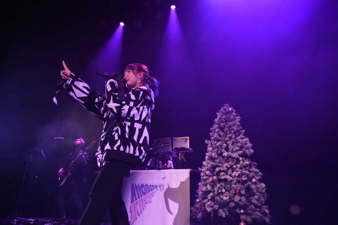 ステージには大きなクリスマスツリーが飾られ、クリスマスムードたっぷりの中、ピンクのペンライトに迎えられて「ハジメマシテ」でライブはスタート。サビの振り付けも印象的なポップチューンに大きな歓声が沸き起こる。2曲目「RAKKA↓KKA」のロックサウンドでさらに温まっていく会場に、宮川自身も「冬の凍えてしまった心を、私の歌でポカポカに、アツアツに、汗だくにしたいと思います!」と宣言した。