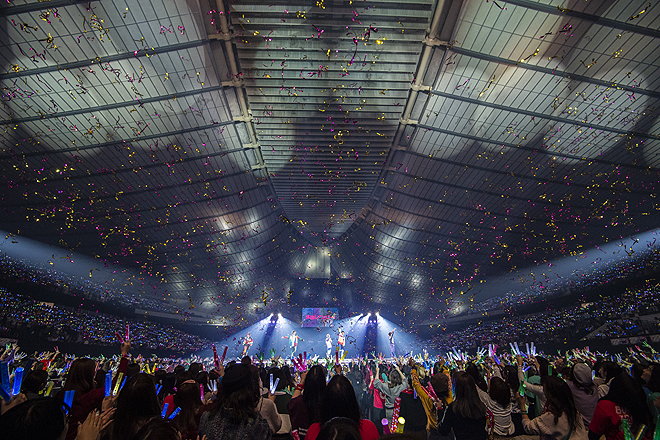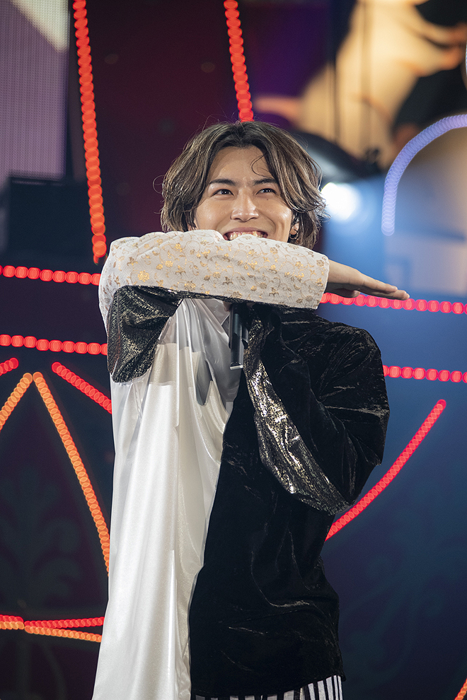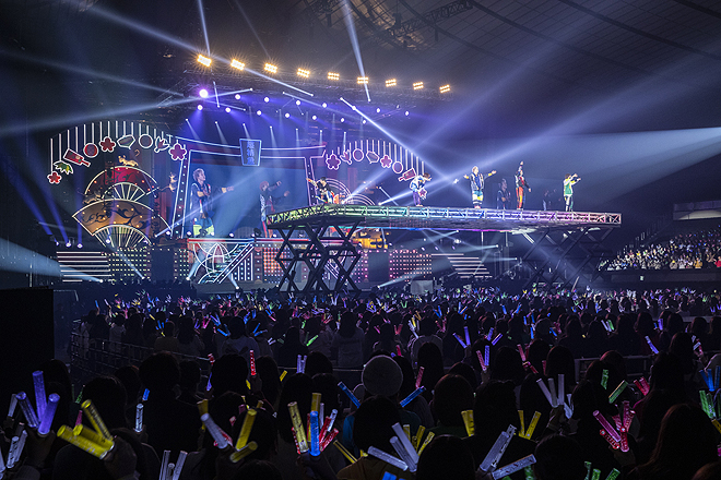 “パステル”をテーマにクリスマスムードいっぱいで届けられた昨年末の大阪城ホール2デイズに対し、年明けの東京公演は“ビビッド”がコンセプト。お正月アイテムがネオンに輝く華やかな舞台の上、おなじみのナンバーがスペシャルな和風アレンジで生まれ変わり、豪快な殺陣のパフォーマンスで新春ムードを盛り立てれば、ゴージャスなムービングステージや客席を駆け巡るトロッコで、メンバーはオーディエンスのすぐ間近に。結成8周年を迎えての進化を見せるダイナミックかつ鮮やかなステージングで、3日間に集まった合計5万人の8号車(超特急ファンの呼称)にデラックスなお年玉をプレゼントしてくれた。