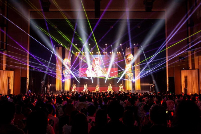 松下のアカペラに導かれて、ドラムロールとストリングスが爆音で絡み合うイントロが会場に轟く。アイドル戦国時代と言われた2010年代を経て、シーンを支えてきたアイドルグループが相次いで解散する今。2020年という新たな1年を迎えるにあたり、自分たちのライブは覚悟の場であることを松下が高らかな独唱で宣言すると、渋谷公会堂は異様な熱気に包まれた。