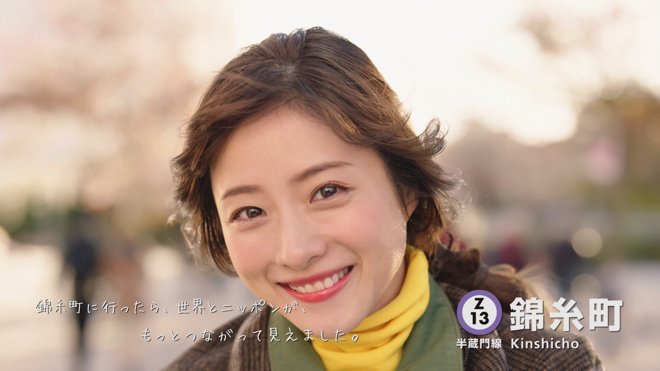 今回の新CM“「錦糸町_世界とニッポンが、もっとつながって見える街」篇”では、半蔵門線で錦糸町へ。石原さとみは竹内海南江と共にエジプトの国民食コシャリを味わったり、果物に柄を彫るカービングに挑戦したり、北欧デザインの布ぞうりの中からお気に入りを選んだりと、各国と日本の文化が混ざり合う錦糸町の魅力を体験していく。