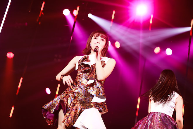 「Same mistakes」では、最新作における先鋭性を一手に引き受けたかのような極めてプログレッシヴな中間部が、より一層臨場感を帯びて展開する。続いてDECO*27との共作により新機軸を打ち出した「I live in hope」を投下。ここでは、ステージに立てられた数本の大きな燭台から炎が上がる演出も。さらには「顔だけ見て選んでいたならGood bye」といった辛辣な言葉が綴られたファンクなナンバー「Why, Mr.?」。そして『不思議の国のアリス』のような世界観が描かれたファンクチューン「Wonderland」では、異空間に迷い込んだ様を楽しく表現するかのような振付けが目を引く。
