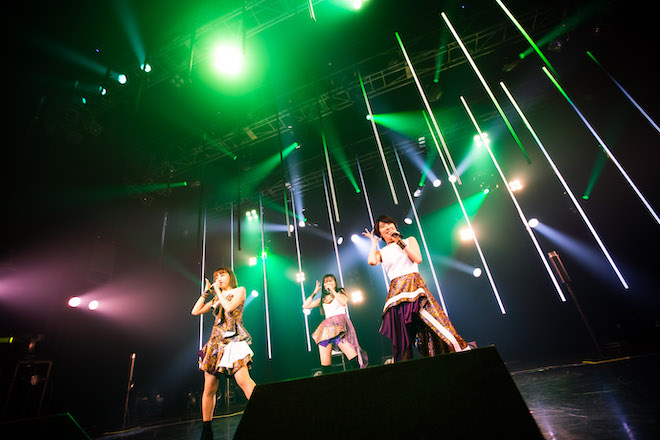 ニューアルバム『Do you know kolme?』の「Intro」が会場に流れると、再び3人がステージに現れる。「新しいkolmeを観てください!」というMIMORIの言葉と共に、後半戦がスタートした。そこでは新作から全曲披露されることとなった。まずは、アルバムのオープニング曲「Gotta look」。EDM音色が多用され、いつになくイケイケ感が前面に打ち出されたナンバーだ。続いて、グルーヴィーなジャズファンク曲「Get your control」。洋楽的要素とJ-POP的要素がバランス良く配合された「Deep breath」。MCを挟んで「Remind me…」。RUUNAが今は亡き愛犬への想いを綴ったこの曲では、情感が溢れる彼女の歌唱がひときわ感動的に響く。