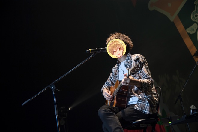 莉犬が退場すると、るぅとがステージ脇からアコギを運んできた。「どうもみなさん、シンガーソングライターのるぅとです。今日はお集まりいただき、誠にありがとうございます。こちらアコギくんです!」と笑いを取りつつも、「本当に緊張する」と本音を漏らし、自身が作詞作曲した「むしがむり」を弾き語りで披露。バラエティーに富んだ楽曲を届ける姿は、まさにエンターテイナーそのもの。「ライブでは、はじめて弾くので手がぷるぷるするの……今日のために練習してきた」と告げてから、「君と僕のストーリー」へ。フロアに並ぶ一人ひとりの表情を確認しながら、一言一言に丹精を込めて歌い切った。