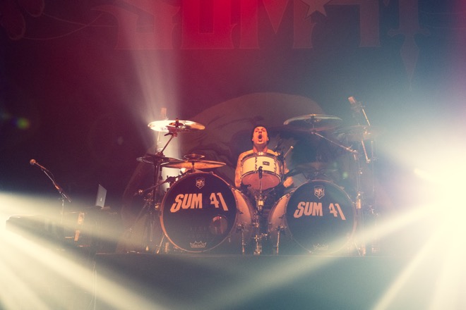 そして、メタル度を高めた「We’re All To Blame」に突入。行進するように規則的なリズムに身体が揺さぶられ、祈りに似たサビの歌メロも印象的で、後半は大合唱が巻き起こる。そう言えば、会場にはIRON MAIDENのTシャツを着た人をちらほら見かけた。SUM41はデビュー時からデイヴの音楽的嗜好もあり、メタルの要素を堅持していた。この日も披露された初期のMV曲「Fatlip」における“陽気なポップパンク”というイメージも根強いが、作品を重ねるごとにメタル色を強め、ダークなロックサウンドに音楽性をシフトしていった。また、ライヴを体感すれば、ポップパンク、メタルテイスト、シリアス路線のロックと、色合いの違う各時代の楽曲がきちんと機能し、陰に陽に力を発揮していることがよく分かる。パンクファンだけではなく、メタル/ロック好きのツボを突く曲調も兼ね備えた多彩な攻撃力が抜群に光っていた。
