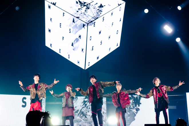 花村想太の「行くぜ代々木!」という叫び声と共にライブの幕を開けると、超満員となった会場のボルテージは一気に最高潮に。サイコロの目のように作られた花道を5人が縦横無尽に動きまわり、会場の広さを感じさせない圧巻のパフォーマンスで観客を魅了していく。デビュー曲「SHOUT IT OUT」から最新シングル曲「BACK TO BACK」まで、ベストアルバム『Da-iCE BEST』収録曲を中心に全30曲を披露した。