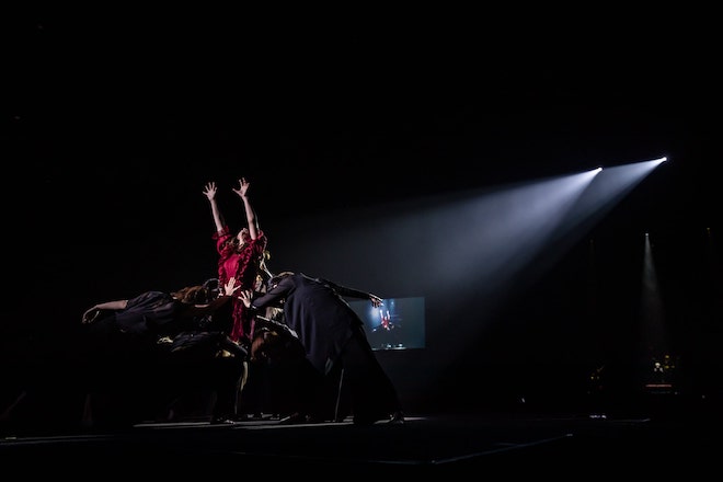 公演も中盤に差し掛かったところ、ダンサーが花道に登場し「季節と雨と涙と」に合わせてコンテンポラリーダンスを披露。「FREEDOM」「溺死」「DV」などのバラードが続くと、ダンサーの数も少しずつ増えて行き、ストーリーが曲と踊りで紡ぎ出され、壮大な舞台を観に来ているかのような錯覚に陥る。そして「愛されたいよ」でひとつの物語は大団円を迎える。