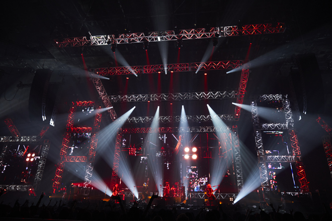 場内におなじみのSE「This is Halloween」が流れ、LEDスクリーンにイメージ映像と各メンバー写真が映し出され、最高の悪夢の始まりに高鳴りを抑えきれないオーディエンス。幕開けの曲は活動休止前のラストシングル「Awakening.」だった。