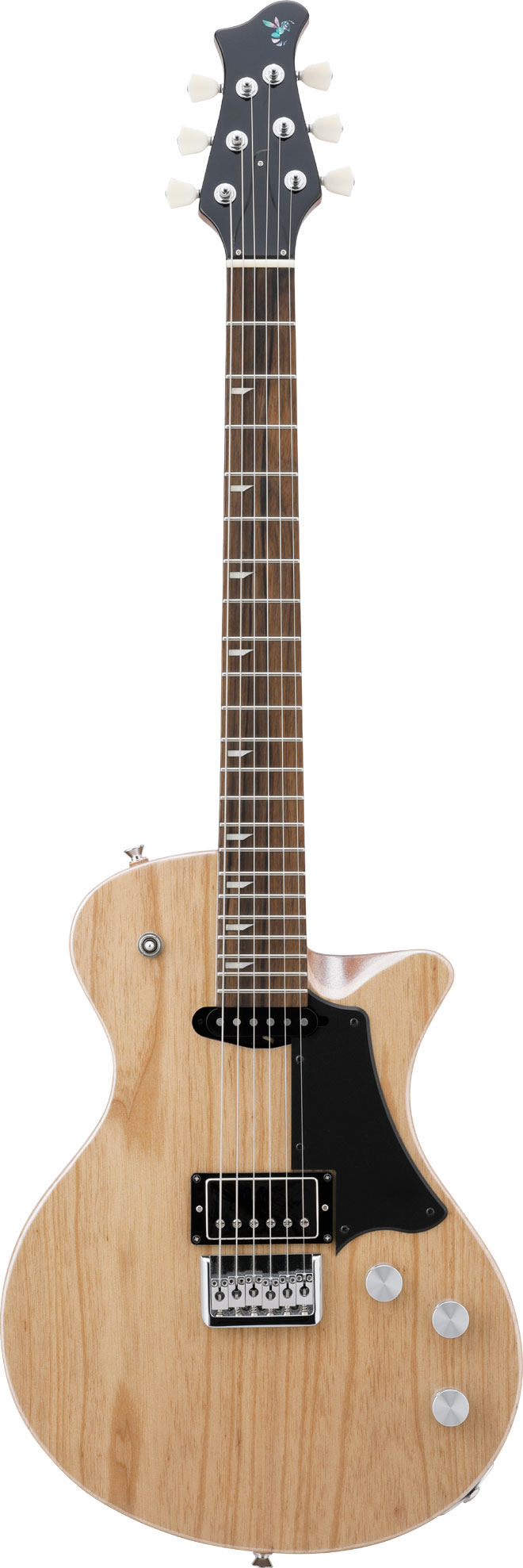 ステージ映え抜群、RYOGAからライトアッシュの天然杢に光の角度でパール粒子が輝くギター「HORNET-H3」
