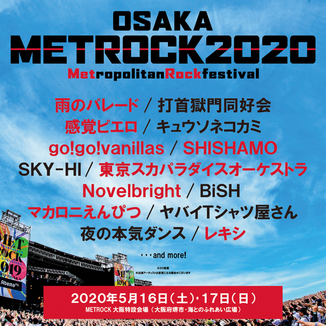2020年5月16日(土)・17日(日)にMETROCK大阪特設会場および、2020年5月23日(土)・24日(日)に新木場・若洲公園にて開催される<METROPOLITAN ROCK FESTIVAL 2020>より、出演者の第2弾発表が行われた。