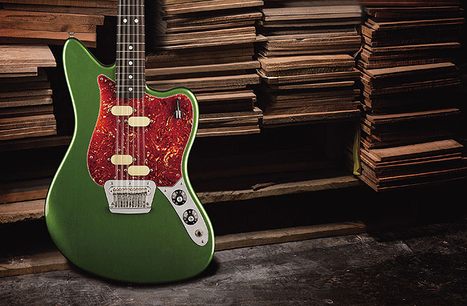 フェンダーのペインターJay Nelsonとコラボレーションして制作されたマスタービルダー、デニス・ガルスカの作品。煌めくスパークルフィニッシュのアーガイル柄ペイントがプレイヤーの中のヒップスター精神を目覚めさせる。