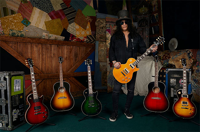 ギブソンが、スラッシュの初となるコレクション「Slash Collection」を発表。複数のエレクトリック・ギターとアコースティックギターを含むこのコレクションは、米カリフォルニア州アナハイムで開催の世界最大級の見本市NAMM SHOWのギブソン・ブースで初披露された。