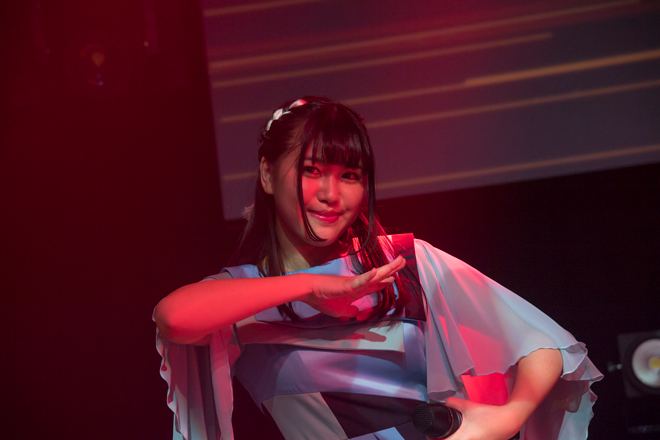 巫女衣装からブルーの衣装に早替えすると、メンバーの自己紹介ソング「ピクミクパーティー!」と「Raise the sail!」を披露。その後は短い自己紹介MCがあり、「Pump It Up!」「ノア」と2曲続けて披露。そして、曲紹介MCで「まばたきしないで見てほしい!」とMISAKIが言うと、2月5日にリリースされるニューシングル「チョコレート・リグレット」のカップリング曲「Don‘t Look Back」を初披露。曲間にはメンバーそれぞれが夢やグループへの思いを語ったインタビュー映像も上映された。