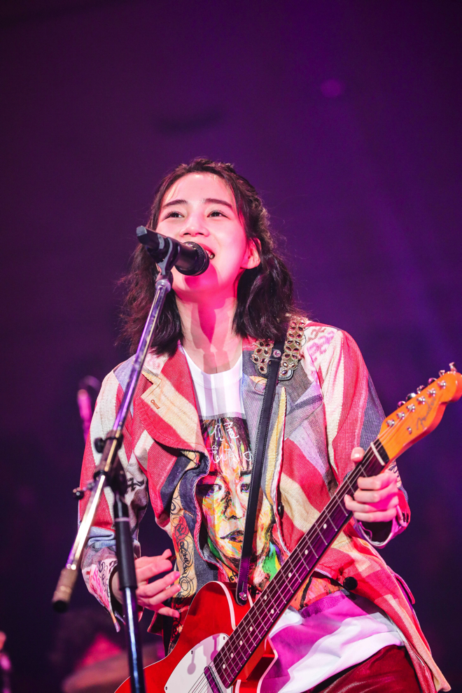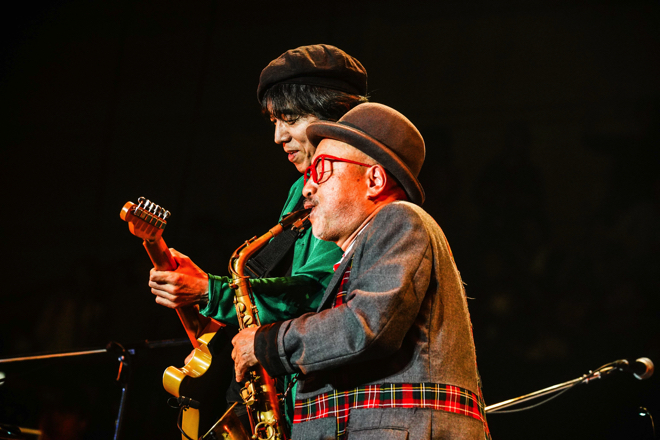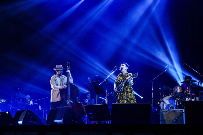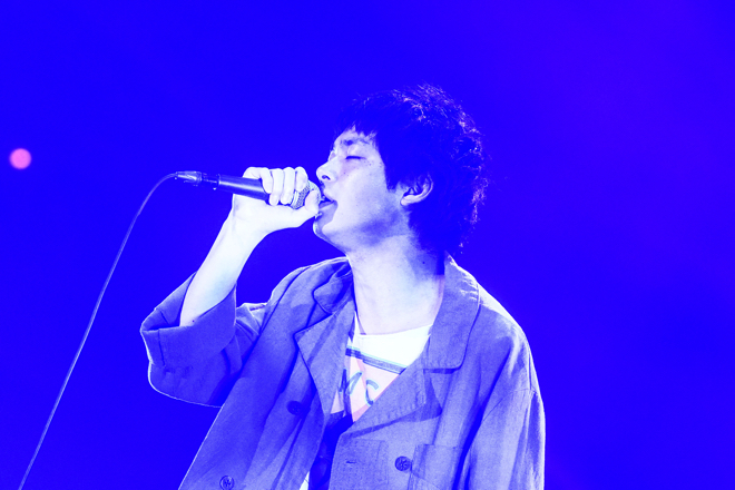 続いては、「すごく占いが当たりそうなゲイバーのママみたいな格好ですけど(笑)、僕も1曲歌わせてもらおうかな」と、斉藤の飲み友達でもあるというリリー・フランキーがステージへ。「自分の彼女が三番目に大切だって歌うんですけど、こんな正直な曲があるのかなと(笑)」と、「三番目に大事なもの」を斉藤と歌う光景が、少年時代に部屋で清志郎の音楽を聴いているかのようなノスタルジーに誘う。さらには、斉藤が「最近一番好きなミュージシャン。ものすごい声なんですよ」と男女2人組ユニット・T字路sを紹介。言葉どおりのハスキーな歌声の凄みで、その存在をしっかりとアピールしていた。そんな白熱の演目が続く中、目を閉じ全身全霊で「ヒッピーに捧ぐ」を絶唱した渡辺大知には、観客も思わず息を呑む。
