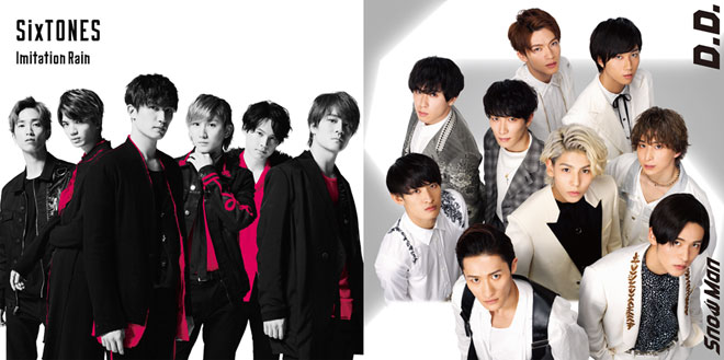 SixTONESのデビュー曲「Imitation Rain」は、YOSHIKI(X JAPAN)プロデュースでも話題の壮大なロックバラード。Snow Man「D.D.」は、アクロバットを武器に持つ彼らのパフォーマンスが存分に発揮されたアッパーチューンとなっている。