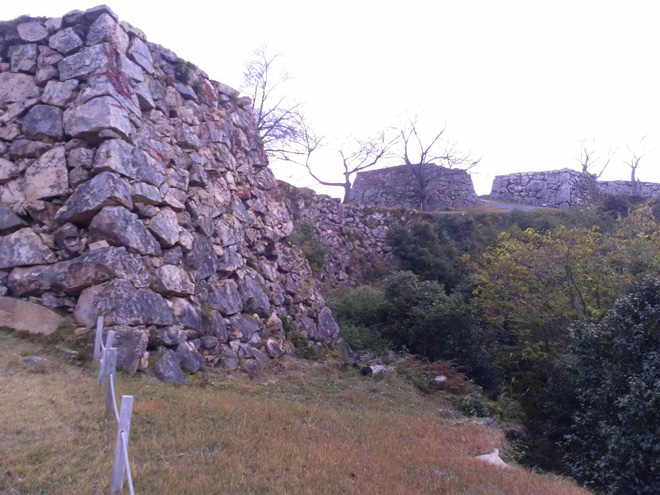 とにかく、素晴らしい城なのだ。何故ここまで綺麗に現存しているかと言えば、地元の人がずっと継承して整備してきたとのこと。涙ぐましい努力と人間愛なわけだ。継承していく文化、まさにロックンロールではないか!そんな素晴らしい話があっていいのか!廃城になったのは1600年付近。良い城だけに家康はこの城を誰にも継がせず廃城にした。大阪への入り口、京都への入り口、鳥取への入り口、中国地方への入り口の全ての県境にあった重要な城だけに、ここを守らせることがむしろ謀反を招くと判断したのだろう。建物は壊されても石垣は残った。朽ち果てた城であっても城下町から見上げると本当に美しかったらしく、町の人達でずっと、約400年に渡り整備してきたというのである。城内の木や草を切り続け整備してきたことで石垣が膨らむこともなく今日まで残った。もちろん何度か石垣の修復はしているにせよ、その話を想うだけで城マニアは涙が出る。私のファンクラブ発足時に入会し、どれだけ私が変化と進化を繰り返しても一度も脱会せず、一度も脱会せず!一度も脱会せず!今日までファンを続けてくれている神様のような、生きる人間国宝のような人達と同じである。