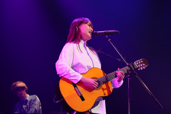 CROSS FMの人気ナビゲーター・MASAKIの紹介で、この夜のオープニングアクトを務めたのはひらり。このライブのためにオーディションを勝ち抜いた彼女のしなやかな歌声が、会場となったZepp Fukuokaを包み込む。「恋桜」「ラブソング」と2曲連続で披露したバラードで、愛する人への儚い思いを紡いだ。決して派手さはないが確実に聴く人の心に浸透していく。