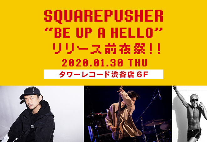 いよいよ明日1月31日に発売となる5年ぶりの最新作『Be Up A Hello』は、エレクトロニック・ミュージックに目覚めた当時の思いや記憶を綴った日記のようでもありつつ、直感と初期衝動に従って一気に完成させ、強烈で、スピーディで、目まぐるしくて、刺激的で、先の予測のつかない、「これぞスクエアプッシャー」と言える内容となった最新アルバム。本日1月30日(木)には、タワーレコード渋谷店限定で「Squarepusher『Be Up A Hello』リリース前夜祭」と称し、アルバムの全フォーマット世界最速販売に加え、真鍋大度(Rhizomatiks) & mito (clammbon) & たなしん (グッドモーニングアメリカ/タナブロ) によるトークショーを開催!今回解禁となったこのMVについてもたくさん裏話が聞けるだろう。店頭での観覧は無料となっており、タワレコTVにてネット生配信も行われる。
