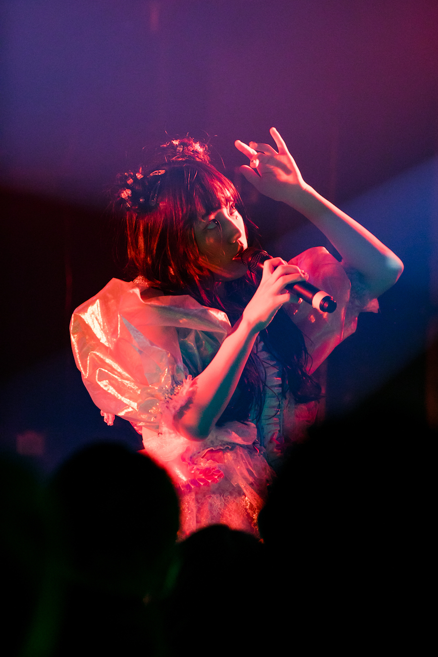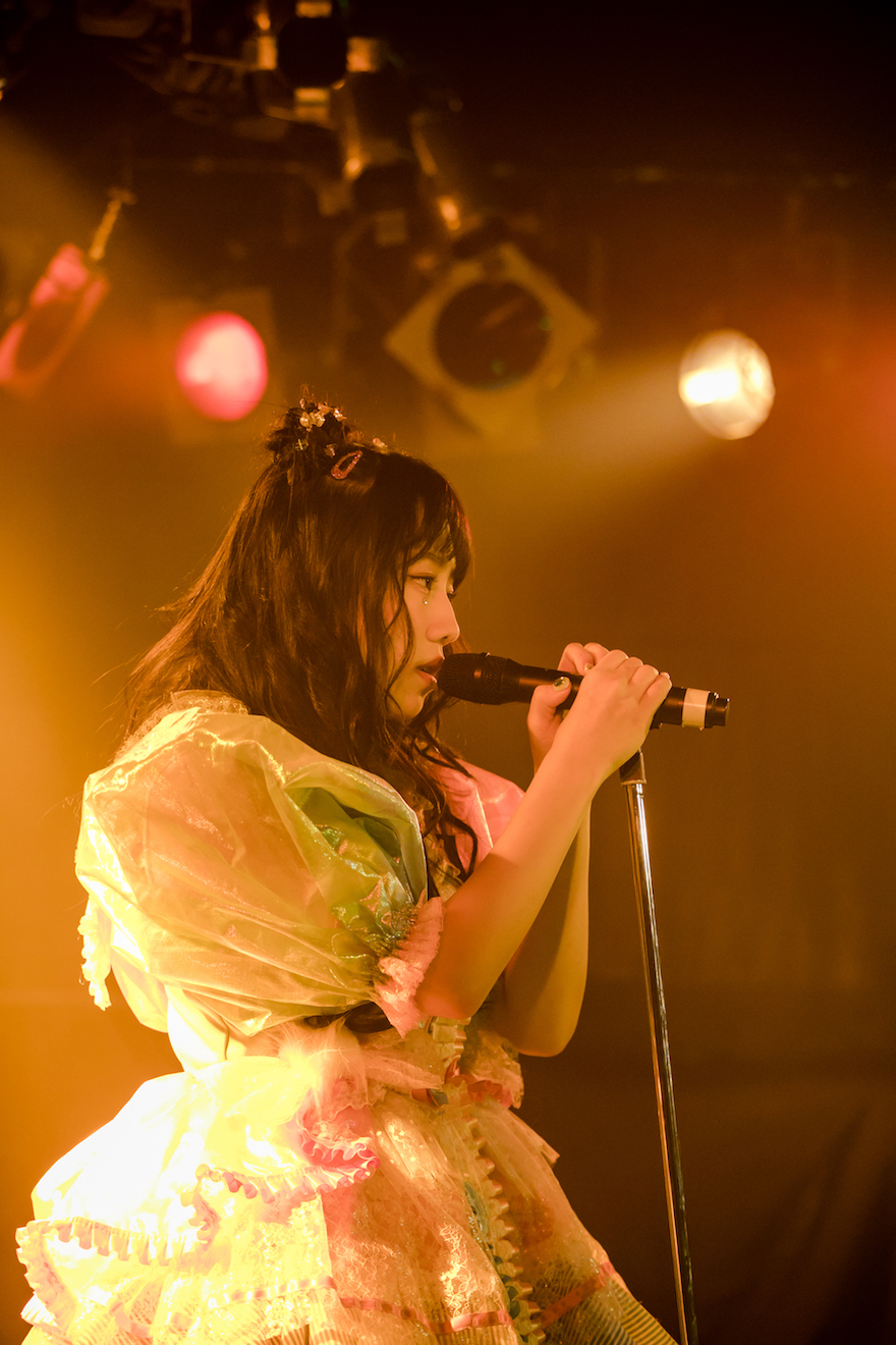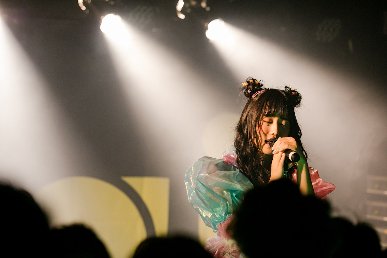 ぁぃぁぃらしいプラス思考を綴ったダンサブルな4つ打ちナンバー「ねむの気力」のあとは、メロウでミッドテンポの「好きに生きたらいいとおもうよ」、繊細な心模様を覗かせるバラード「小春日和」を、暖色系のやわらかな明かりの下でしっとりと披露。これまでに見せてこなかった新鮮な一面はオーディエンスをグッと惹きつけ、“ときめきぺいんたー”としてのアプローチがより深みを増したような、思わず聴き入ってしまう時間となった。