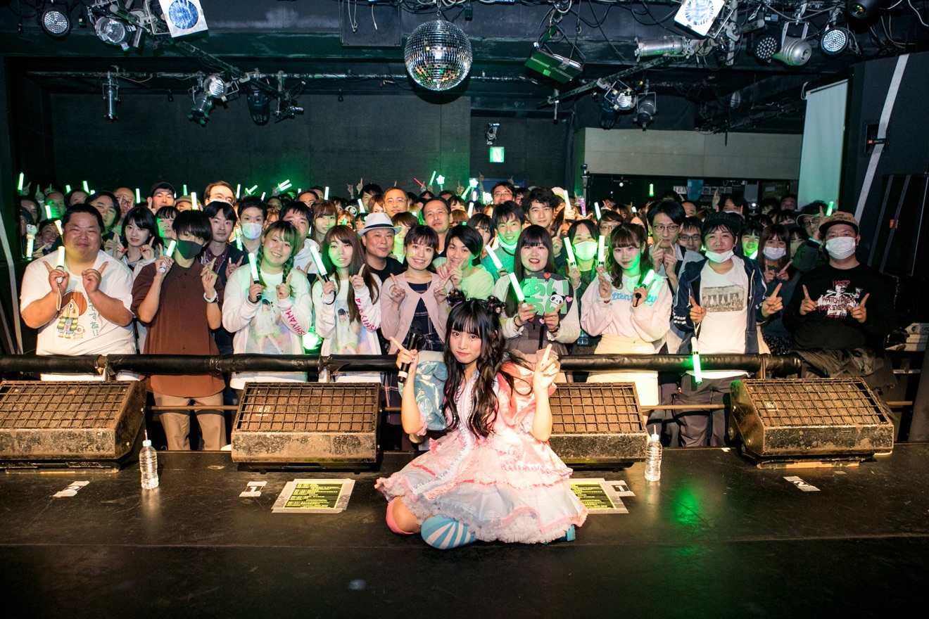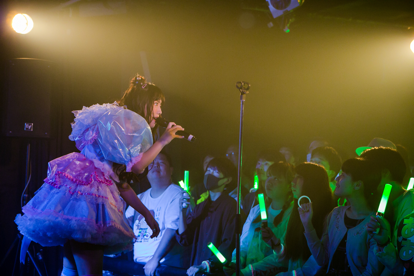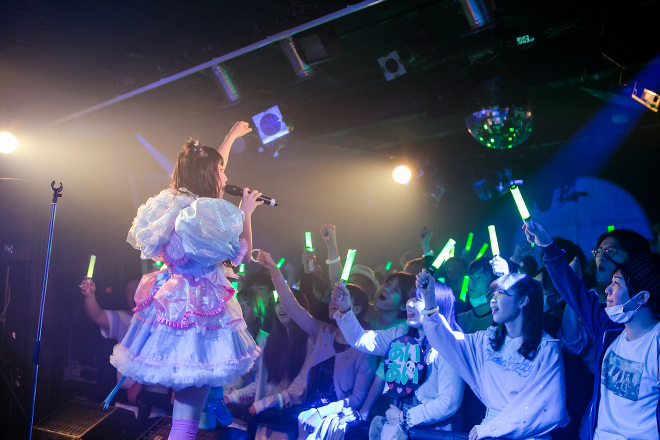 「知らない曲ばかりなのに盛り上がれるってすごいよ!! 本当に温かい方々に囲まれて感謝です。ありがとうございます」とお客さんに言葉をかけるぁぃぁぃ。「みなさん、今日はどこから来たんですか?」という問いかけには、なんと「北海道」「仙台」「大阪」の声が上がり、驚きと喜びの表情も浮かべていた。
