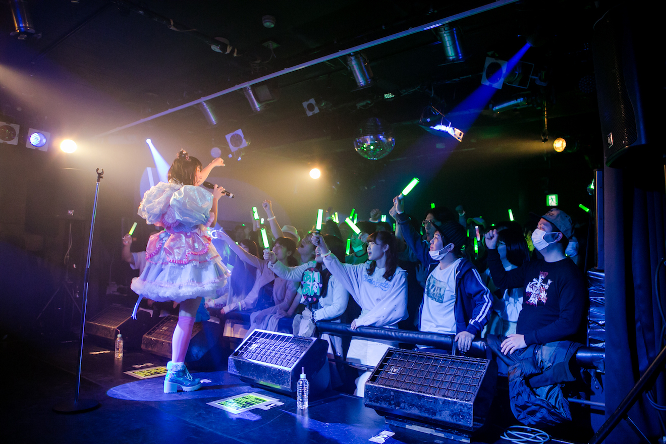 デビューシングル「好きに選べばいいじゃん。」から約7ヵ月の時を経て、待望の1st EP『冬来りなば春遠からじ。』が完成。そのリリースに伴う初ワンマン当日はEPの発売日であることに加え、ぁぃぁぃ21歳の誕生日でもあり、何かとハッピーが盛りだくさんの記念日となった。満員のファンでパンパンに埋まった大塚Deepa。ミラーボールが照らす開演前のフロアにはすでに熱気が漂っている。