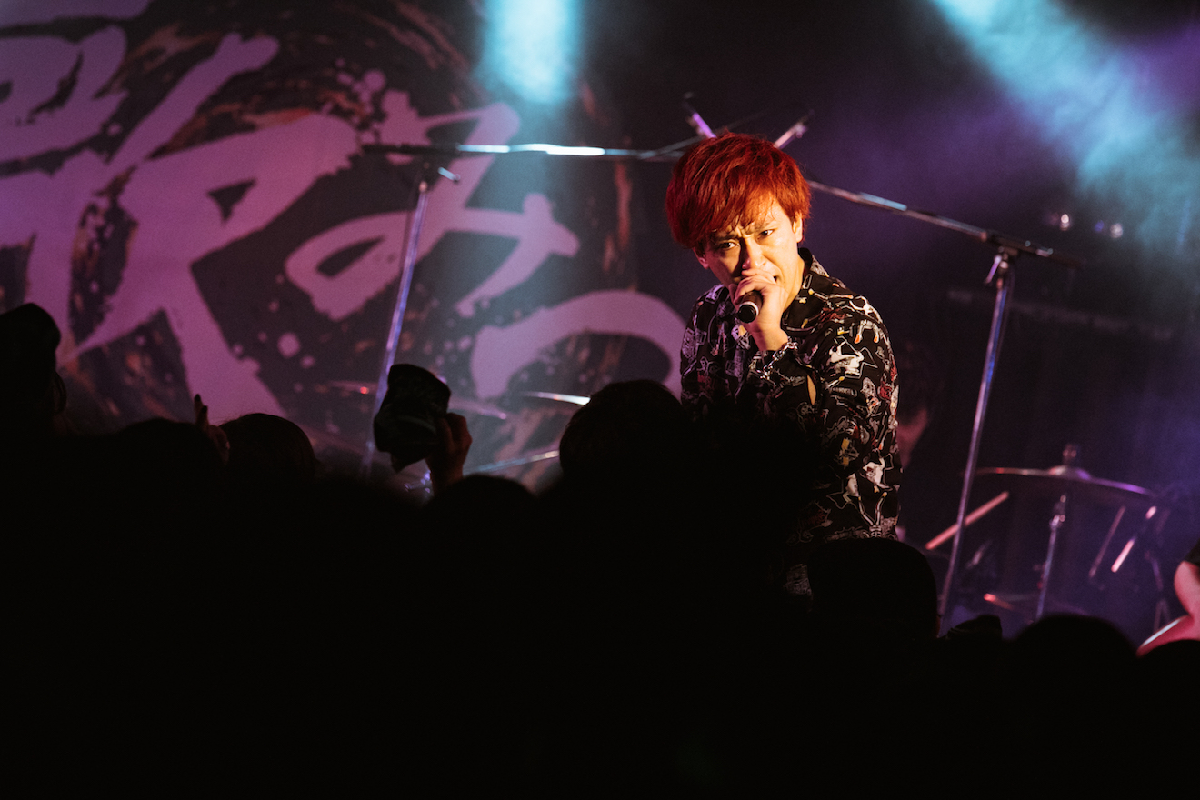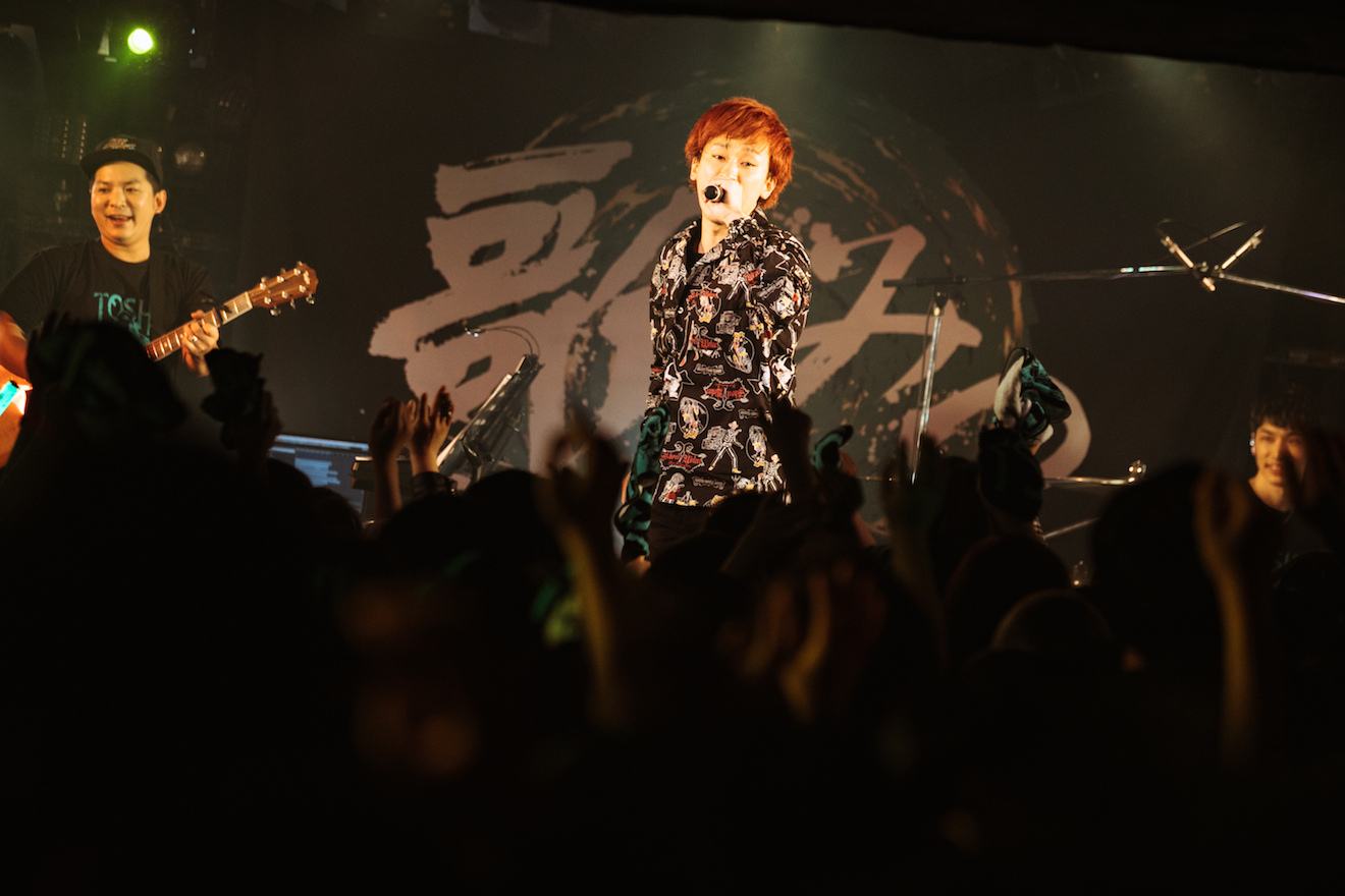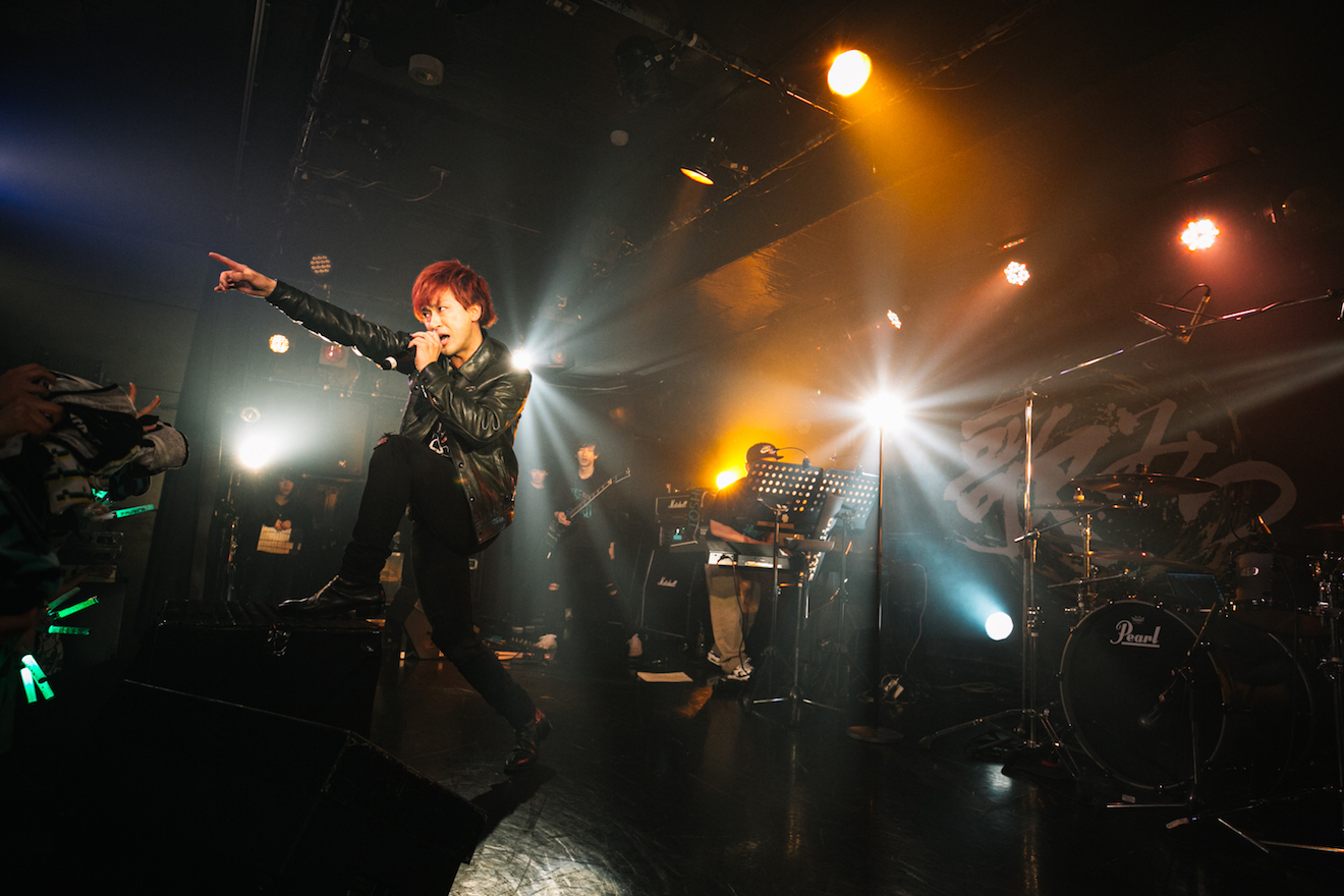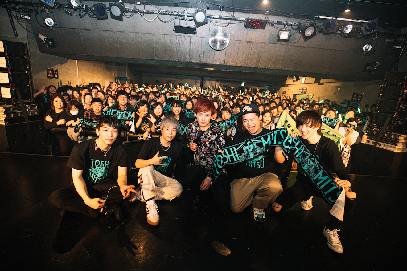 シンガロングなどの熱いリアクションを受け、早くも上着を脱ぎ捨てたとしみつは「俺が観たくて来たんでしょ? 本日はようこそお越しくださいました。ワンマンライブというものをやるのは5年ぶりで、Charactic Note(としみつが以前所属していたバンド)のとき以来。1人でステージに立ち続けるこの感じをみなさんと味わえて嬉しいです」と挨拶し、バンドメンバーのTAKASHI(Ba)、RYOTA(Dr)、越前谷直樹(Key)、Yoichi(Gt)を紹介。