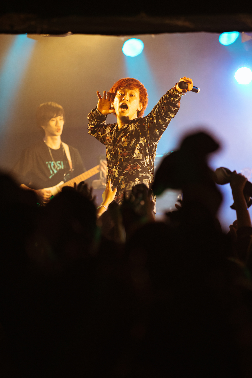 そして、「今日は何が聴きたくて来たの!?」という煽りから、ブラスアレンジとギターロックがマッシュアップされたキレキレの新曲「逃げるが勝ち」へ。未発表のナンバーでも、抜群にキャッチーな歌でオーディエンスをガンガン引っぱることができる。そんなパフォーマンスがいつにも増して頼もしい。絶好調のとしみつは「僕のワンマン童貞を奪いにきたあなたたち、最高の声を聞かせてください! 男は野太く、女はエロく、よろしくお願いします」と前置きした「C.A.K.E」でさらに加速。セリフパート、コール&レスポンスありのこの曲はやっぱりニクいほどに盛り上がりまくる。