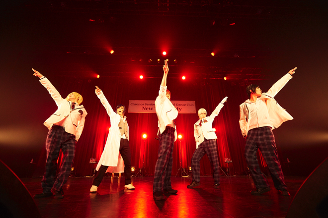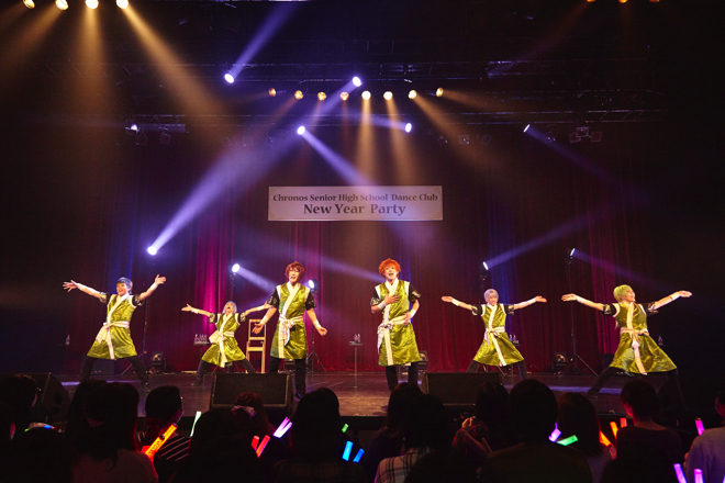 そんな包容力あふれるアルスマグナとのステージで、後輩たちも遠慮なくそれぞれに個性を爆発。卓越したダンスパフォーマンスに定評のある先輩たちに必死に喰らいつきながらも、本番中に女性客を口説き出すチャラいメンバーがいたり、トークの速度がやたら遅いゆるキャラかと思ったらバキバキに踊り出すメンバーがいたり、自信がなくて怯えながらも主人公級の存在感を発揮するメンバーがいたりと、さすがはアルスマグナの後輩と感じさせる、誰ひとりファンを飽きさせることのないプロフェッショナルぶりで、爆笑と興奮の渦を生み続けていく。そんなクロノス学園ダンス部メンバー6人のみで先輩たちが育ててきた楽曲「絆ストーリー」を継承パフォーマンスしたと思えば、それに対してアルスマグナが大人の魅力で「カルチェ」をジャジィに歌い踊る粋(いき)な演出も。